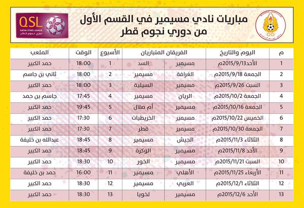 تاريخ الإضافة : 2015-08-26يلتقي فريق مسيمير غدا مع فريق نادي السد في مباراة ودية على ملعب الأخير في تمام الساعة السادسة والنصف وذلك إستعدادا للمواجهات الرسمية للموسم الجديد حيث ستكون أول مباريات فريقنا في دوري النجوم لهذا الموسم أمام نادي السد والتي ستقام يوم الأحد 13 سبتمبر المقبل , وتعد هذه أولى المباريات الودية التي سيخوضها فريقنا بعد إنتهاء معسكره بسلوفينيا .