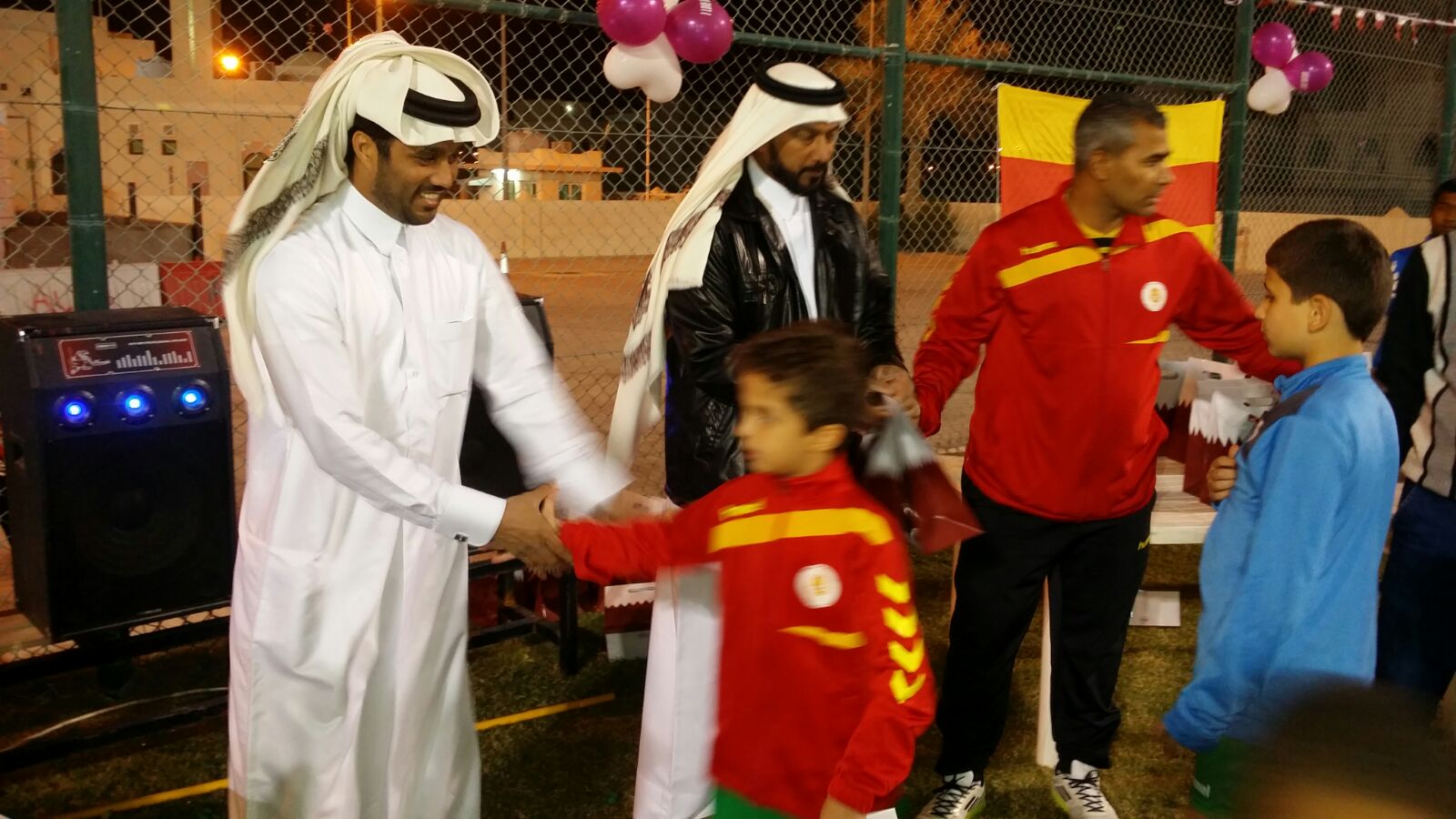 تاريخ الإضافة : 2015-12-16بين لفيف من المدربين والإداريين بنادي مسيمير الرياضي احتفلت فئات البراعم باليوم الوطني لدولة قطر حيث أقيم الإحتفال على ملاعب النادي وسط تفاعل جميل بين المدربين واللاعبين حيث عزف السلام الوطني للدولة وأقيمت الألعاب والنشاطات في برنامج رياضي ترفيهي مثير احتفاءاً بهذه المناسبة القومية.