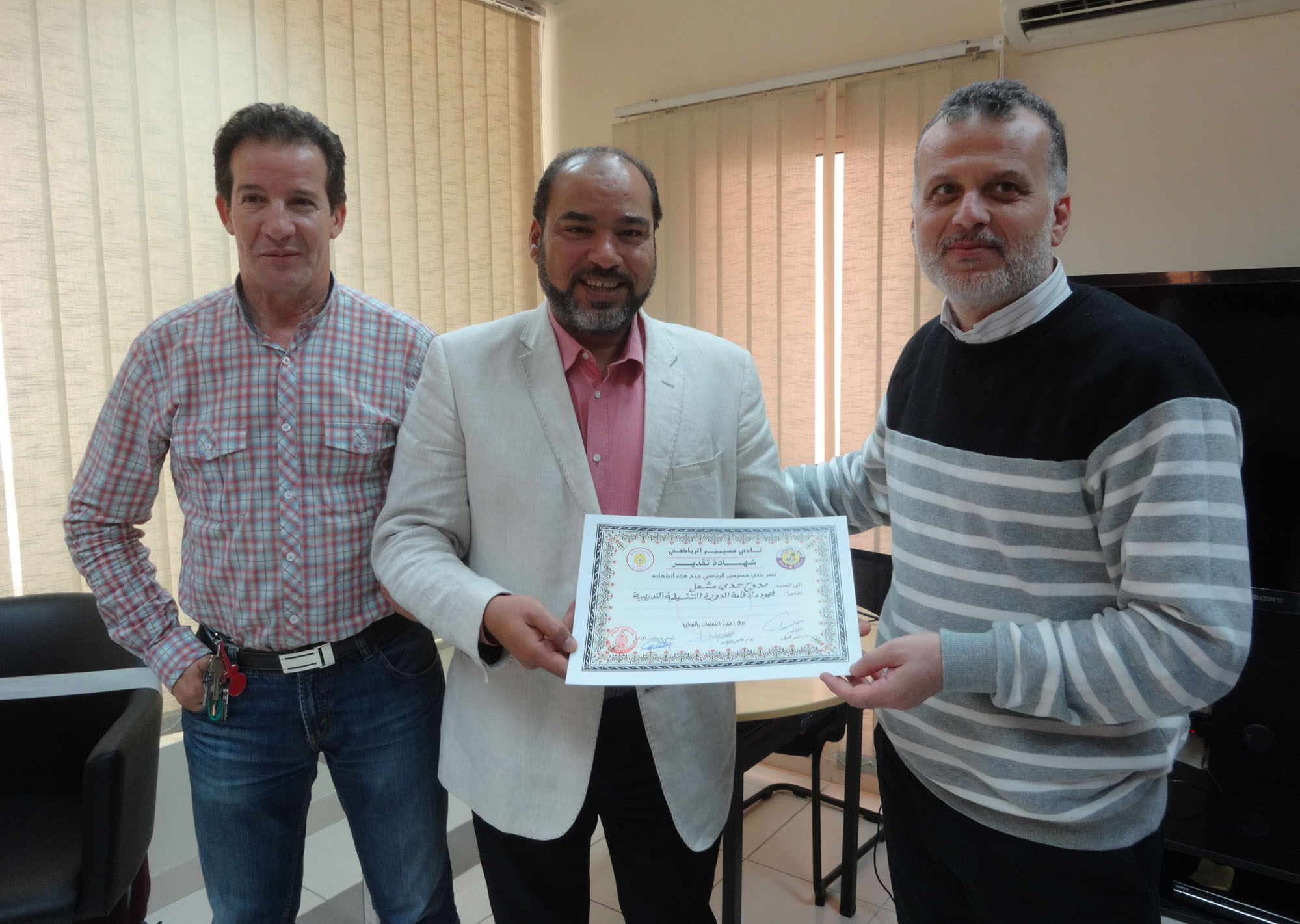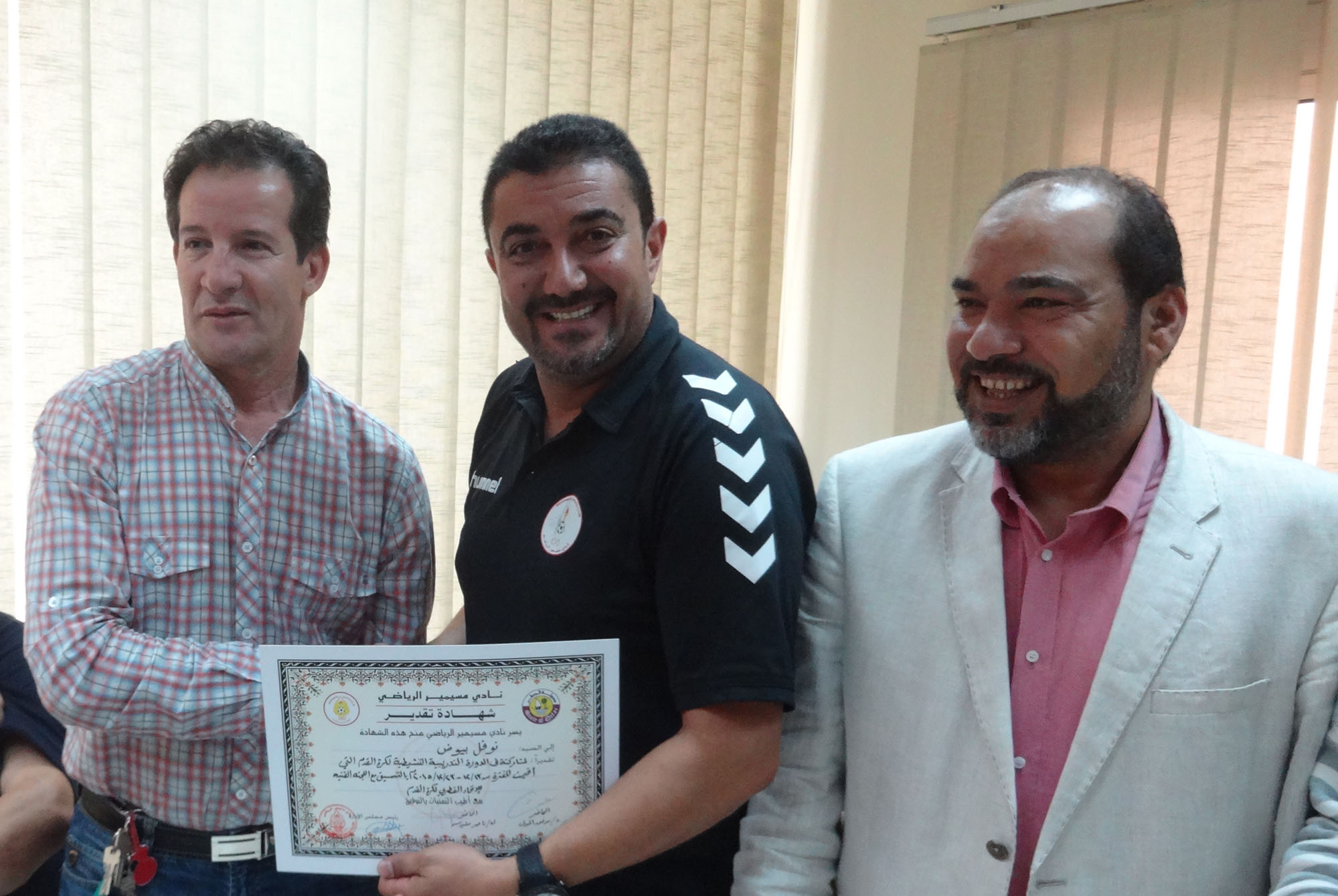 تاريخ الإضافة : 2015-12-23انتهت صباح اليوم أخر محاضرات الدورة التنشيطية التدريبية الثانية التي أقامها نادي مسيمير الرياضي لمدربية في الفترة من 13/ 12 إلى 23 / 12 وذلك بالتنسيق مع إدارة التطوير لكرة القدم وقد حاضر في تلك الدورة الدكتور / موفق المولى والكابتن / ناصر مقيدش حيث شملت أسس تعليم وتدريب المهارات والتكتيكات الكروية لدى فرق الفئات السنية كما أقيم في ختام الدورة حفل توزيع الشهادات على االمدربين
