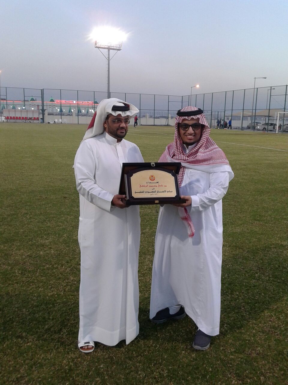 حيث قام السيد/ حاتم المسحل - نائب رئيس نادي الاتفاق والسيد/ عبدالرحمن أمير - مدير فريق نادي مسيمير بتبادل الدروع التذكارية بين الشوطين
