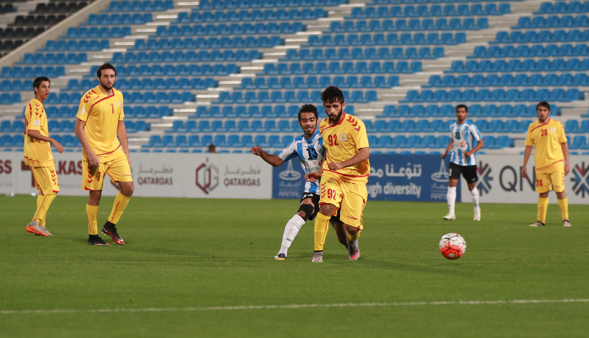 وعبدالرحمن مسعد (هدفين) في الدقائق 22 و40 ووليد صالح في الدقيقة 57 وجاسم جلابي في الدقيقة 76 وناصر المفتاح في الدقيقة 85