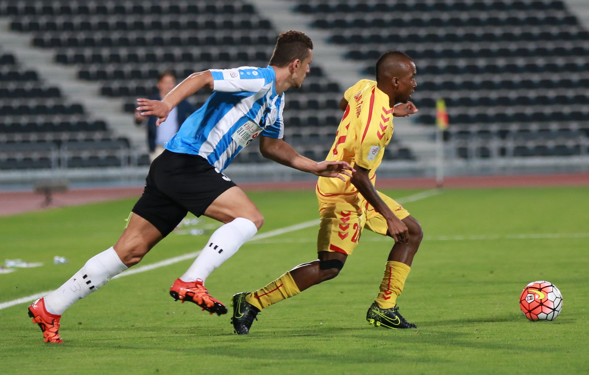 تاريخ الإضافة : 2016-03-10فاز فريق الوكرة على مسيمير بنتيجة 3 / 1، في المباراة التي أقيمت مساء اليوم، على ملعب سعود بن عبد الرحمن بنادي الوكرة في افتتاح مباريات الأسبوع الـ 22 من دوري نجوم قطر، جاءت المباراة قوية ومثيرة حيث تمكن فريقنا من افتتاح التهديف لصالحه عن طريق ادما تراوري في الدقيقة 22 ولكن في الدقيقة 42 احتسب الحكم ضربة جزاء لصالح الوكرة تمكن شاسا من تسديدها في شباكنا محققا التعادل لفريقه لينتهى الشوط الأول على ذلك ، وفي الشوط الثاني لم يفل عزم فريقنا واصراره حيث كان فريق مسيمير ندا قويا للوكرة وحافظ على التعادل حتى قبل نهاية اللقاء بدقيقتين حين تمكن البديل ماهر يوسف، الذي لعب بدلا من حسين ياسر من تسجيل هدف التقدم لفريقه في الدقيقة 88 وكذلك سبستيان ساشا الذي عاد ليسجل هدفه الثاني في اللقاء والثالث لفريقة في الدقيقة 89، وبهذه النتيجة رفع فريق الوكرة رصيده إلى 26 نقطة صعد بها للمركز التاسع، وابتعد مؤقتًا عن موقعة الهبوط في حين تجمد رصيد مسيمير عند 5 نقاط في المركز الأخير في جدول الترتيب.