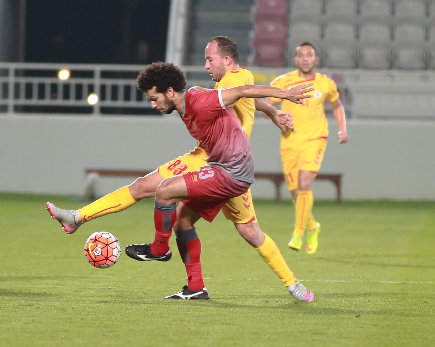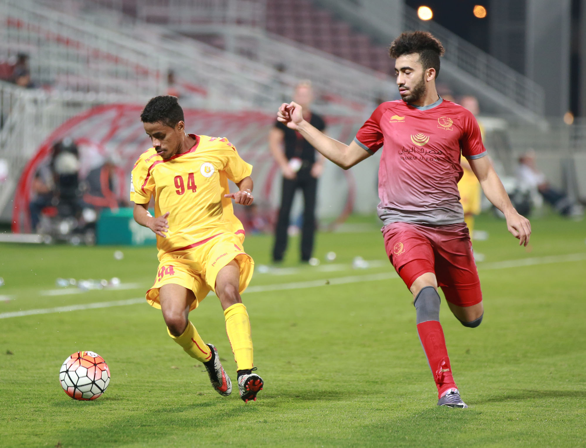 تاريخ الإضافة : 2016-04-15أفلت لخويا اليوم من كمين مسيمير في المحطة الاخيرة وحقق الفوز أخيراً في مباراة قوية ومثيرة عكس كل التوقعات، حيث استطاع فريق مسيمير المتكتل في الدفاع أن يمنع كل محاولات لاعبي لخويا في الوصول إلى مرماهم، قبل أن يخطف هدفا مبكرا ويفتتح النتيجة في الدقيقة التاسعة برأسية المحترف اريفيلتو دا سيلفا ليهدي التقدم لفريقنا ، ورغم المحاولات الهجومية للخويا التي ضلت طريقها الى مرمى مسيمير وأهدار الفريق ل 3 فرص خطيرة، انتهى الشوط الأول بتقدم مسيمير على لخويا بهدف دون رد.