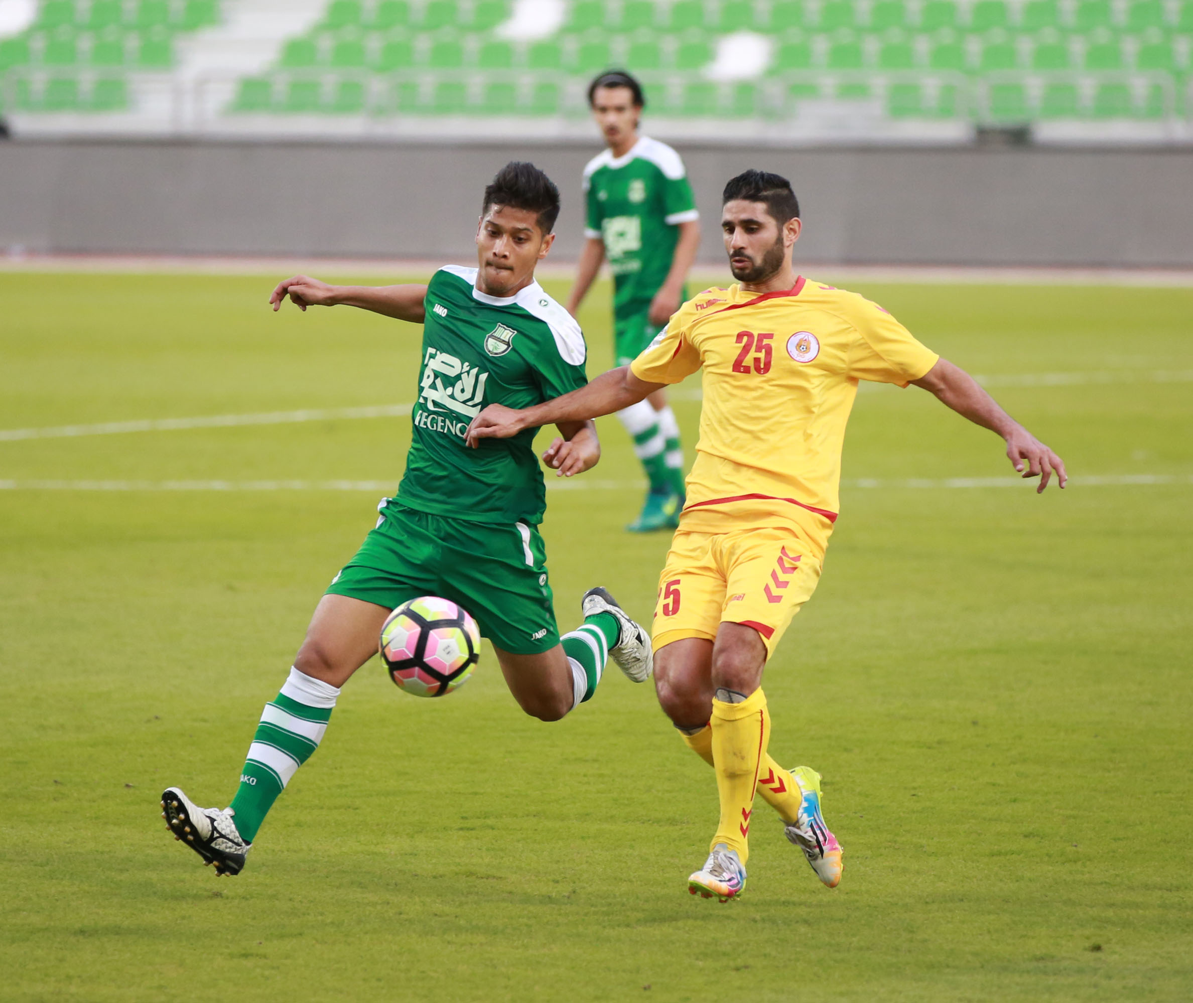 تاريخ الإضافة : 2017-01-15في مباراة شيقة سيطر فيها فريقنا على كافة مجريات اللعب والحق بفريق الأهلي هزيمة ساحقة بنتيجة 4-0 , برز نجم المحترف عماد زعترة حيث تمكن من تسجيل أول ثلاث أهداف في مرمى الخصم في الدقائق 4 و11 و31 ، أما الهدف الرابع فقد سجله المحترف سيليماني ياميني في الدقيقة 38 ، بينما مر الشوط الثاني بدون اهداف رغم سيطرة مسيمير التامة على اللعب.
