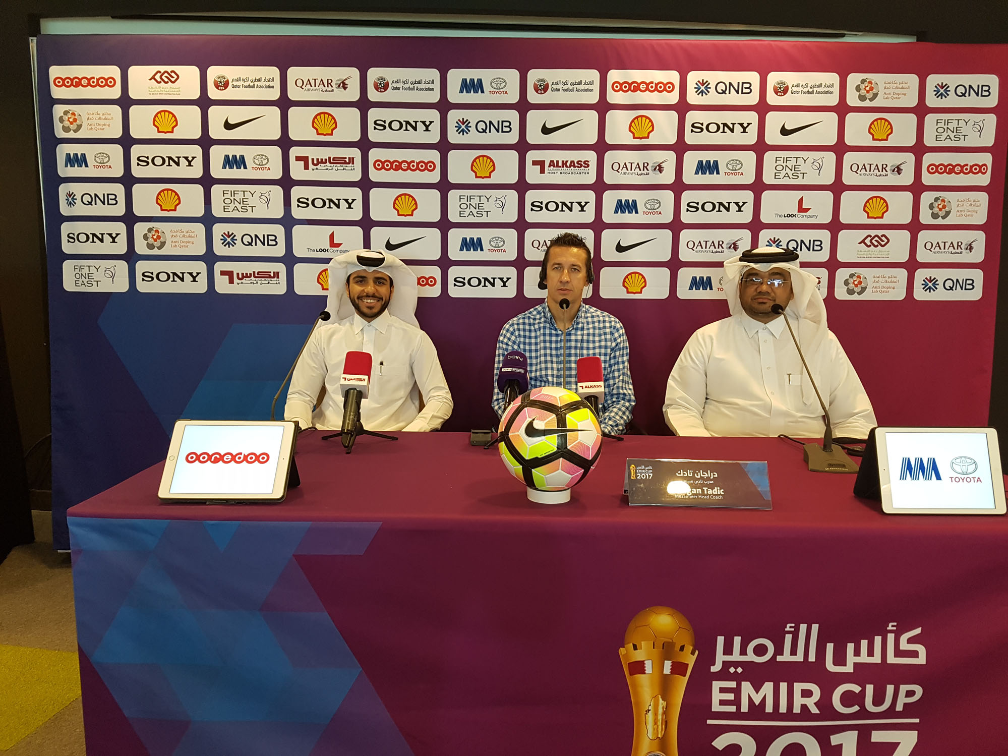 وعن رأيه في نادي قطر قال : ” لا أريد الحديث عن نقاط القوة ونقاط الضعف لاي فريق وأركز فقط على تجهيز فريقي ليكون جاهزاً ويقدم أفضل مستوى وسنلعب من أجل الفوز وثقتي كبيرة في اللاعبين الجميع مستعدون للمباراة غداً ,وفريقي متحمس جداً لخوض تلك المباراة واليوم أخر تدريب قبل المباراة لتحسين بعض الاوضاع للتحضيرلمباراة غداً“.