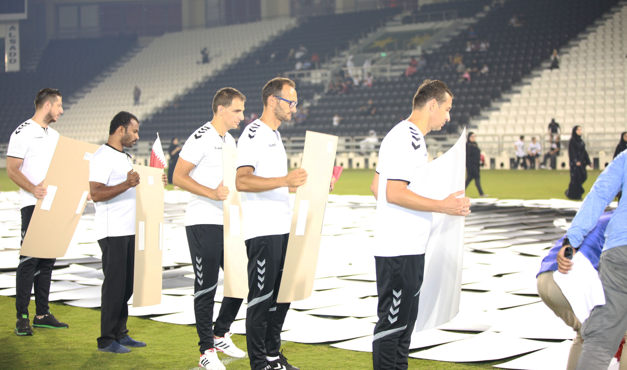 تاريخ الإضافة : 2017-07-25في أجواء مجيدة أتسمت بالوطنية والوفاء شارك نادي مسيمير الرياضي اليوم بوفدا يضم مدربي ولاعبي الفريق الأول في أكبر جدارية بشرية تحمل صورة (تميم المجد) والتي دُشنت في ملعب نادي السد الرياضي تحت اشراف الأتحاد القطري لكرة القدم.