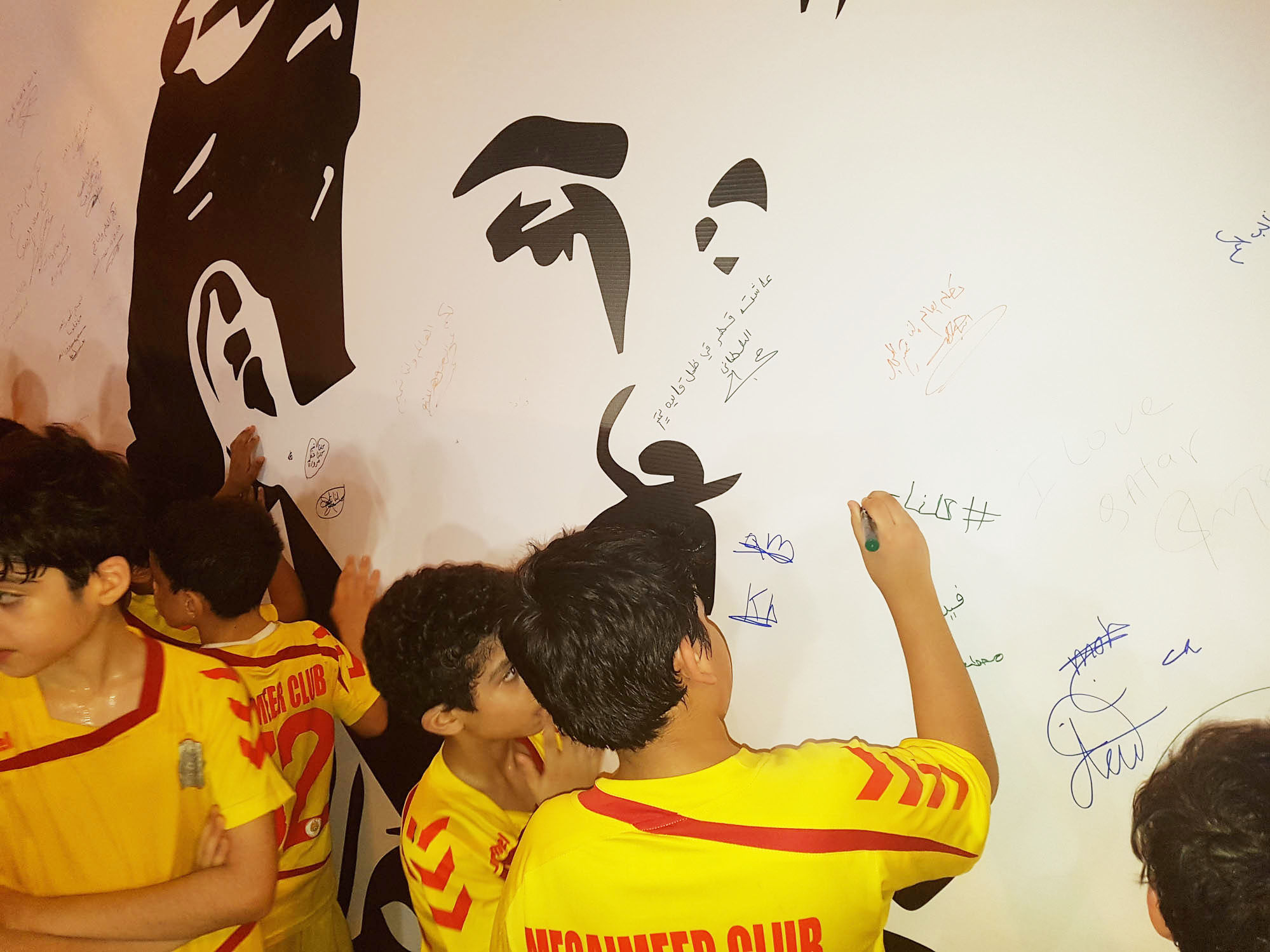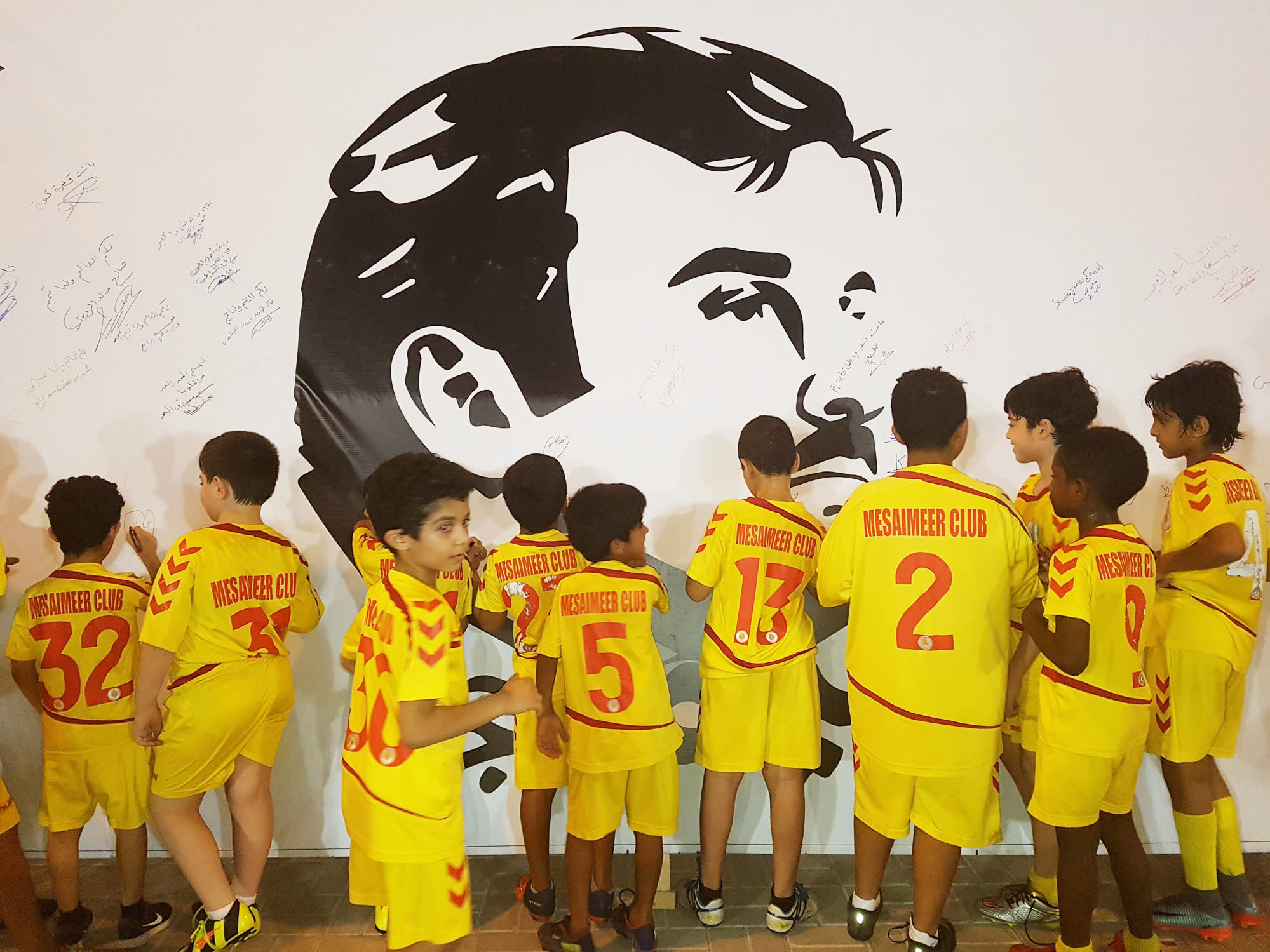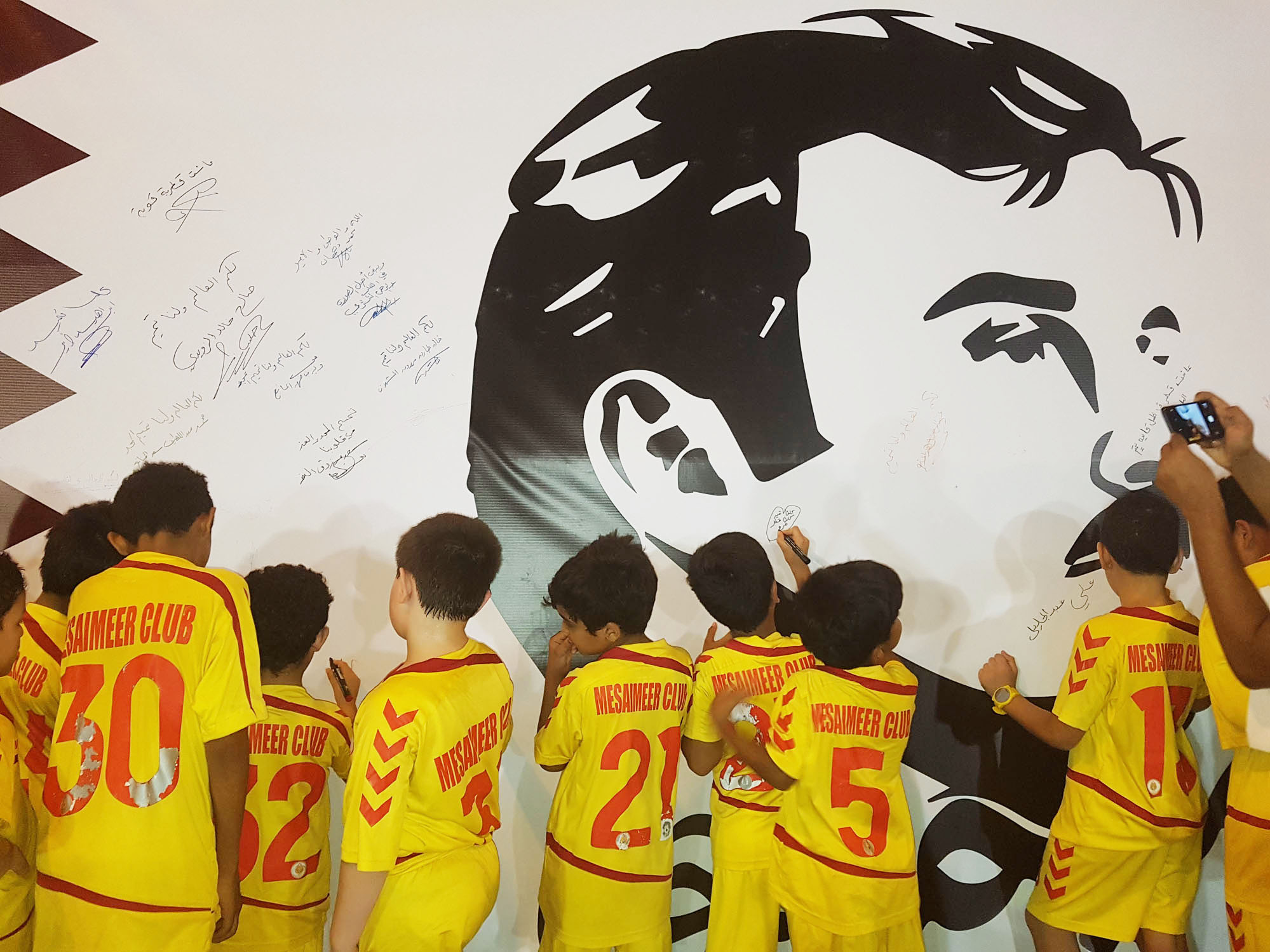حيث قاموا بالتوقيع على جدارية تميم المجد في النادي في موقف مفعم بالانتماء والولاء لقطر الحبيبة.