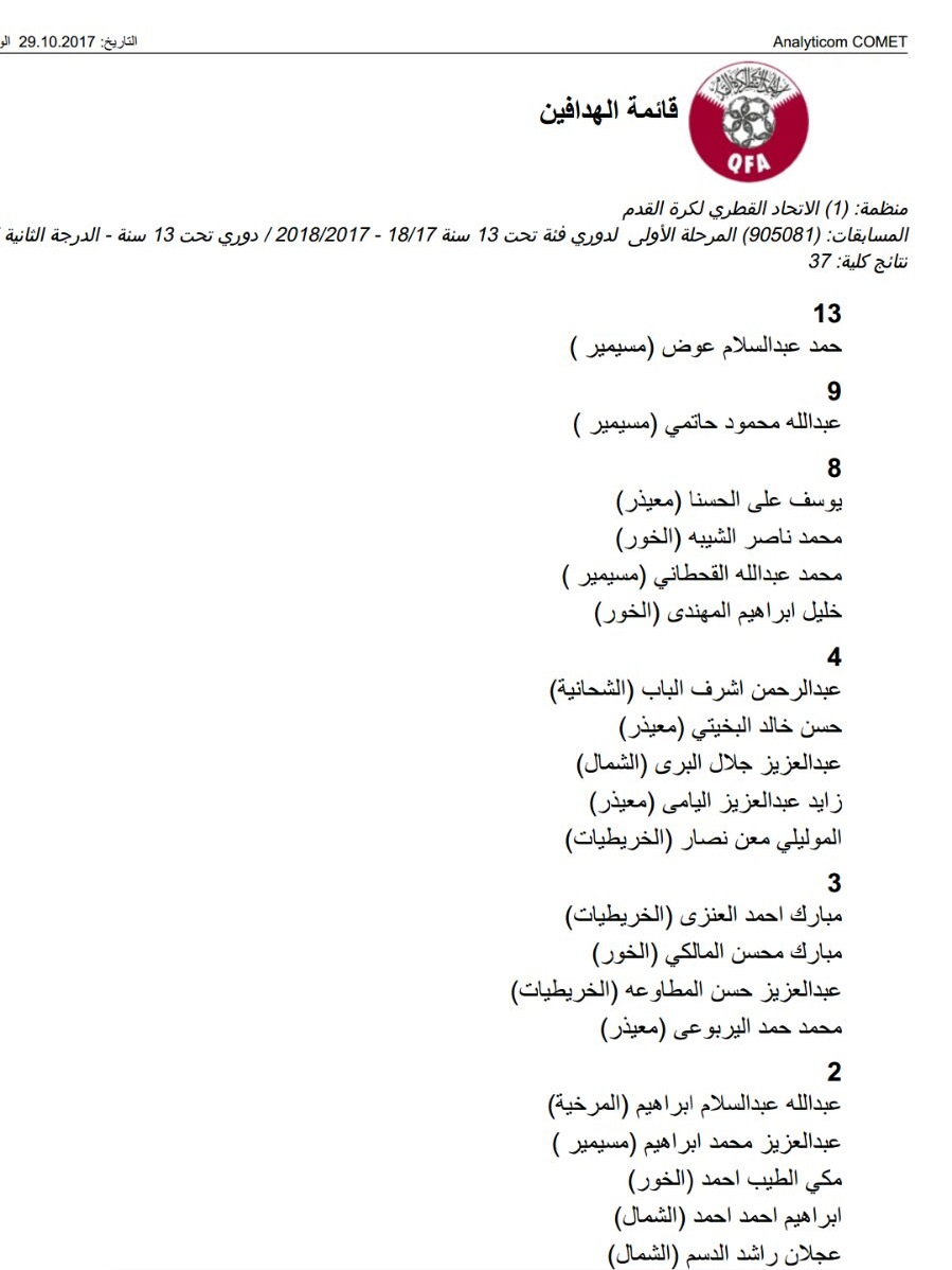 تاريخ الإضافة : 2017-10-30حقق فريق واعدين مسيمير بقيادة الكابتن عثمان الحسيني انتصاراً غير مسبوقًا حيث فاز على نظيره من الشحانية بنتيجة 0/16, وبذلك يتصدر لاعبي مسيمير قائمة الدور الأول للهدافين.