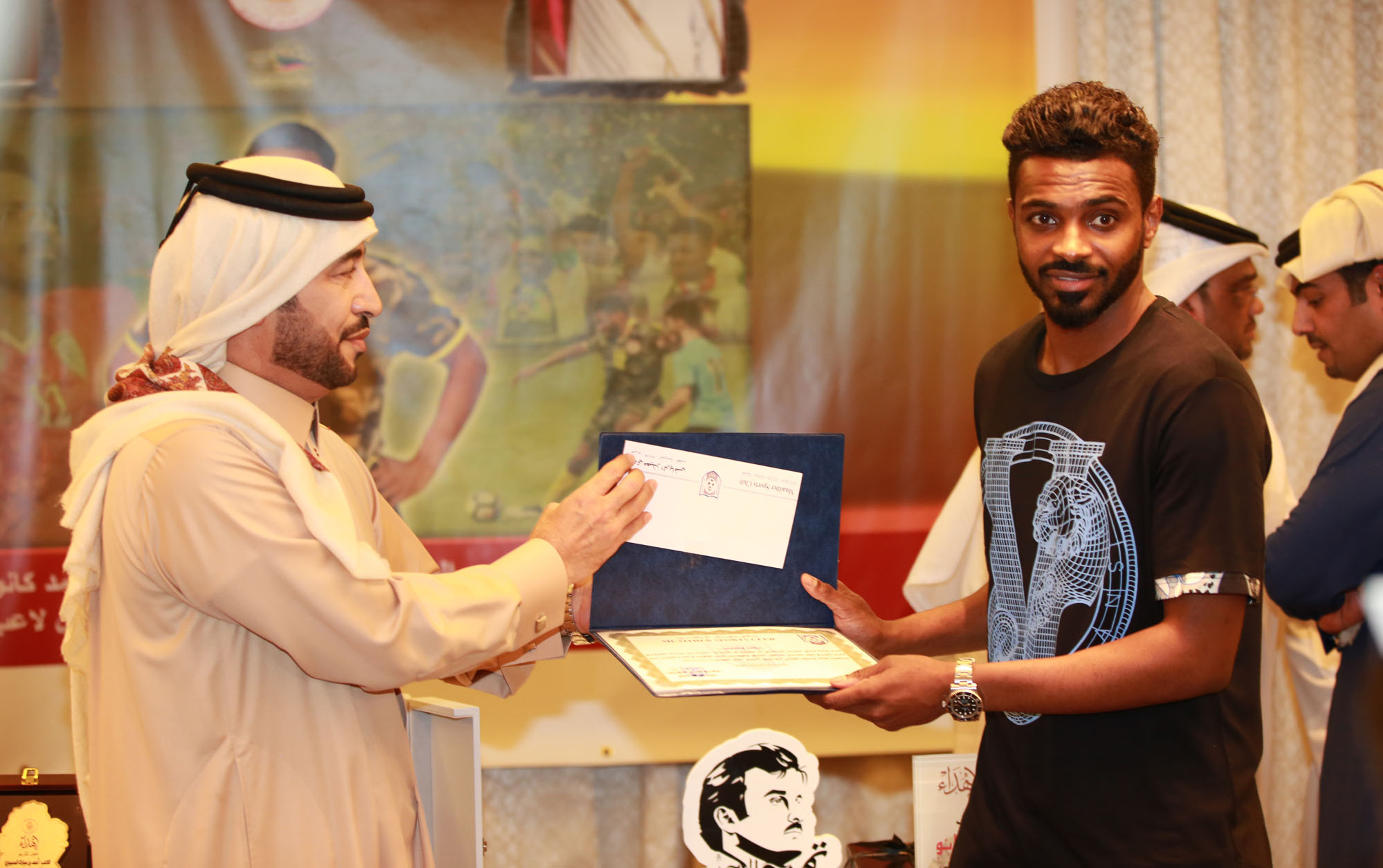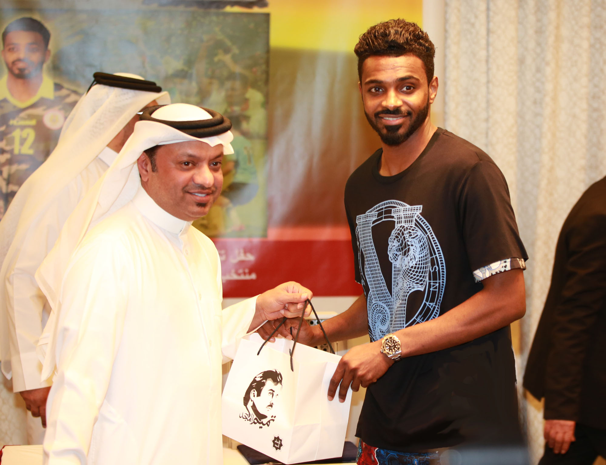تاريخ الإضافة : 2018-01-24أقام نادي مسيمير حفل تكريم للاعبه العماني وقائد منتخب عُمان أحمد كانو بمناسبة تتويج منتخب عمان بلقب خليجي 23 التي أقيمت في الكويت وذلك مساء اليوم بفندق ميلينيوم بلازا بالسد، ويأتي الاحتفال والتكريم في إطار تحفيز اللاعب بعد المستوى الكبير الذي قدمه اللاعب خلال البطولة، وقد تم تكريم اللاعب من قبل السيد / عبدالرحمن بن سعد الشثري - رئيس النادي - والسيد / إبراهيم عبدالرحمن المانع - المدير العام - كما شارك أيضا في تكريم اللاعب السيد / صالح العجي - رئيس نادي معيذر - والسيد / علي المسيفري - رئيس نادي المرخية - وهو ما جعله يفوز بجائزة أفضل لاعب في بطولة خليجي 23، ويعتبر اللاعب بالمحترف المتميز والناجح، وقدم مستويات راقية مع منتخب بلاده في خليجي 23 الأخيرة بالكويت ومع ناديه خلال المباريات الأخيرة في دوري الدرجة الثانية، وكان نادي المرخية قد قام بتكريم اللاعب كانو قبل أيام باعتباره أحد لاعبي الفريق السابقين.
