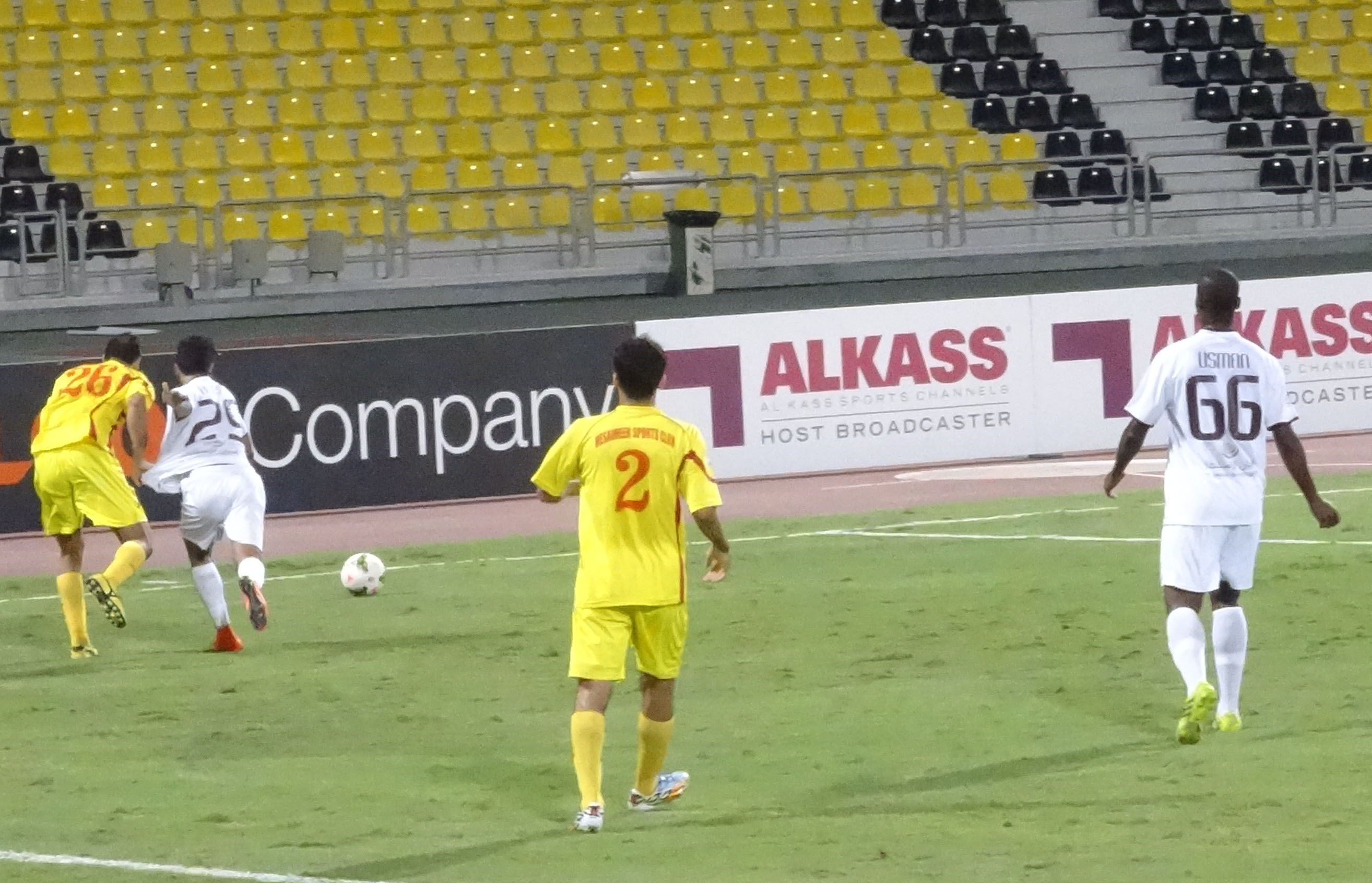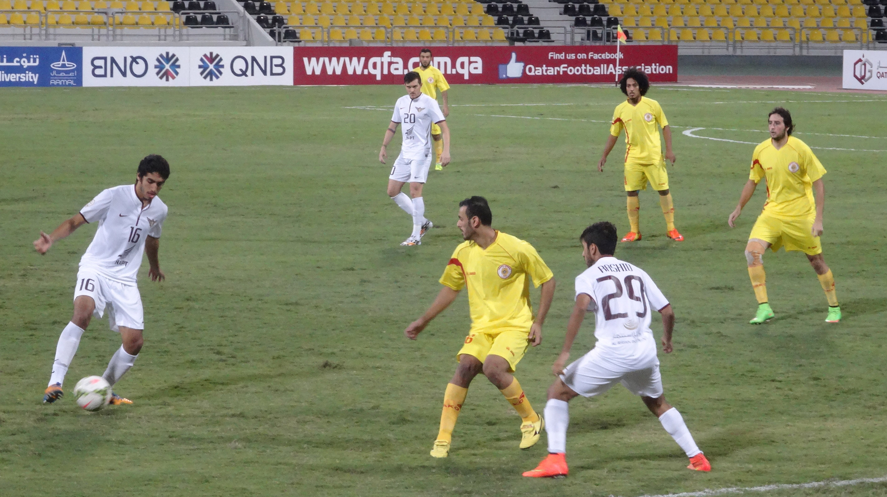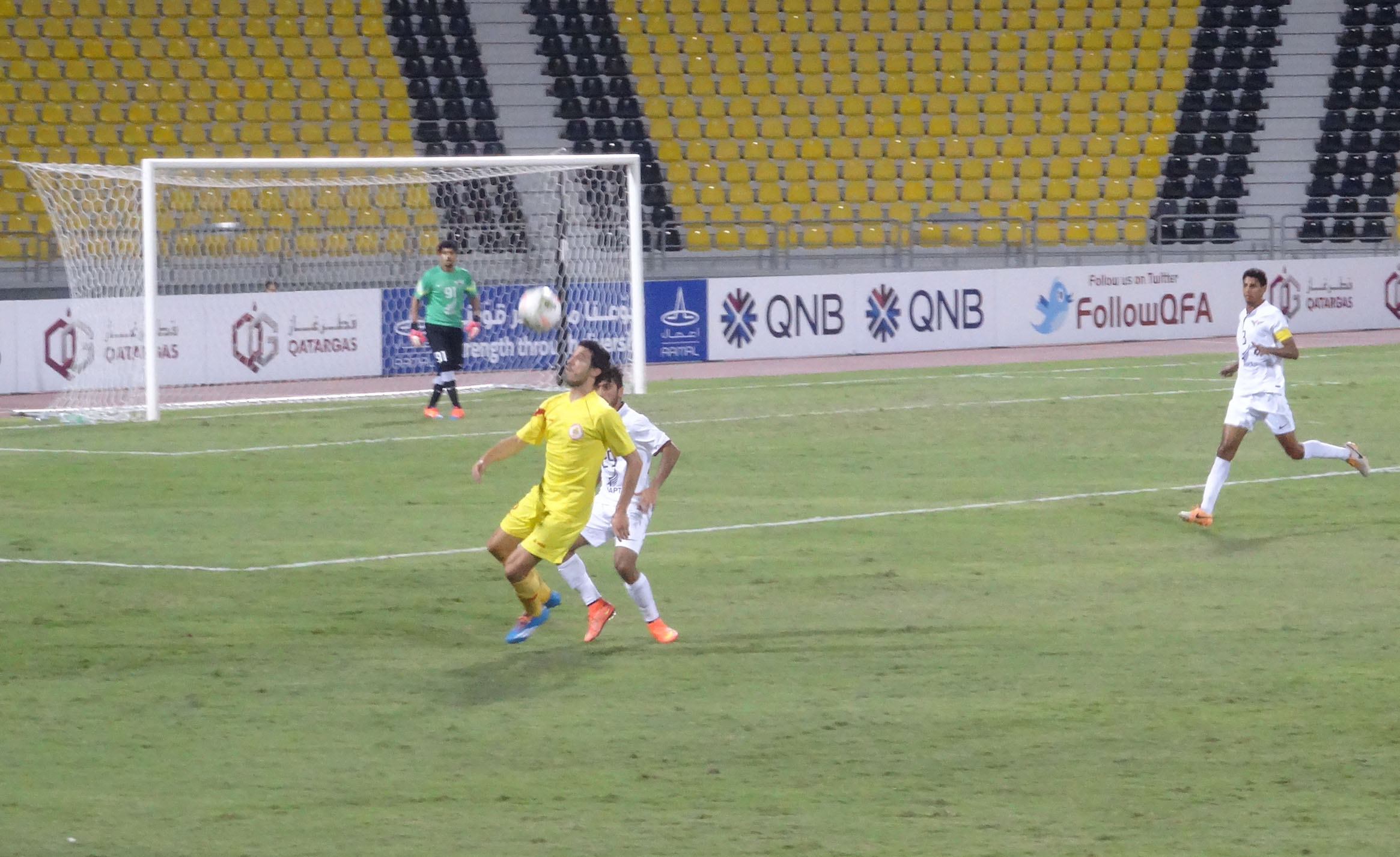تاريخ الإضافة : 2014-10-19في مفاجأة من العيار الثقيل فجرها فريق مسيمير على ملعب نادي قطر في المباراة التي جمعته مع نادي الجيش حيث تمكن فريق نادينا من الفوز بثمانية أهداف مقابل هدفين لصالح فريق نادي الجيش فبالرغم من أن الجيش كان له المبادأة بالتهديف حيث سجل الهدف الأول في المباراة لصالحه في الدقيقة 15 إلا أن مسيمير بلغ التعادل بهدف من المحترف أنسيلمو من ضربة جزاء في الدقيقة 28 ثم كان الهدف الثاني لصالح مسيمير في الدقيقة 31 وسجله اللاعب جسي لكن فريق الجيش عاد ليسجل هدفه الثاني في الدقيقة 34 من ضربة حرة مباشرة محققا التعادل ولكن أبى لاعبوا مسيمير من أن يمر الشوط الأول بالتعادل فكان الهدف الثالث في الدقيقة الأولى من دقيقتى الوقت بدل الضائع على يد اللاعب أنسيلمو لينتهى الشوط الأول بتقدم مسيمير بثلاثة أهداف مقابل هدفين لصالح الجيش.