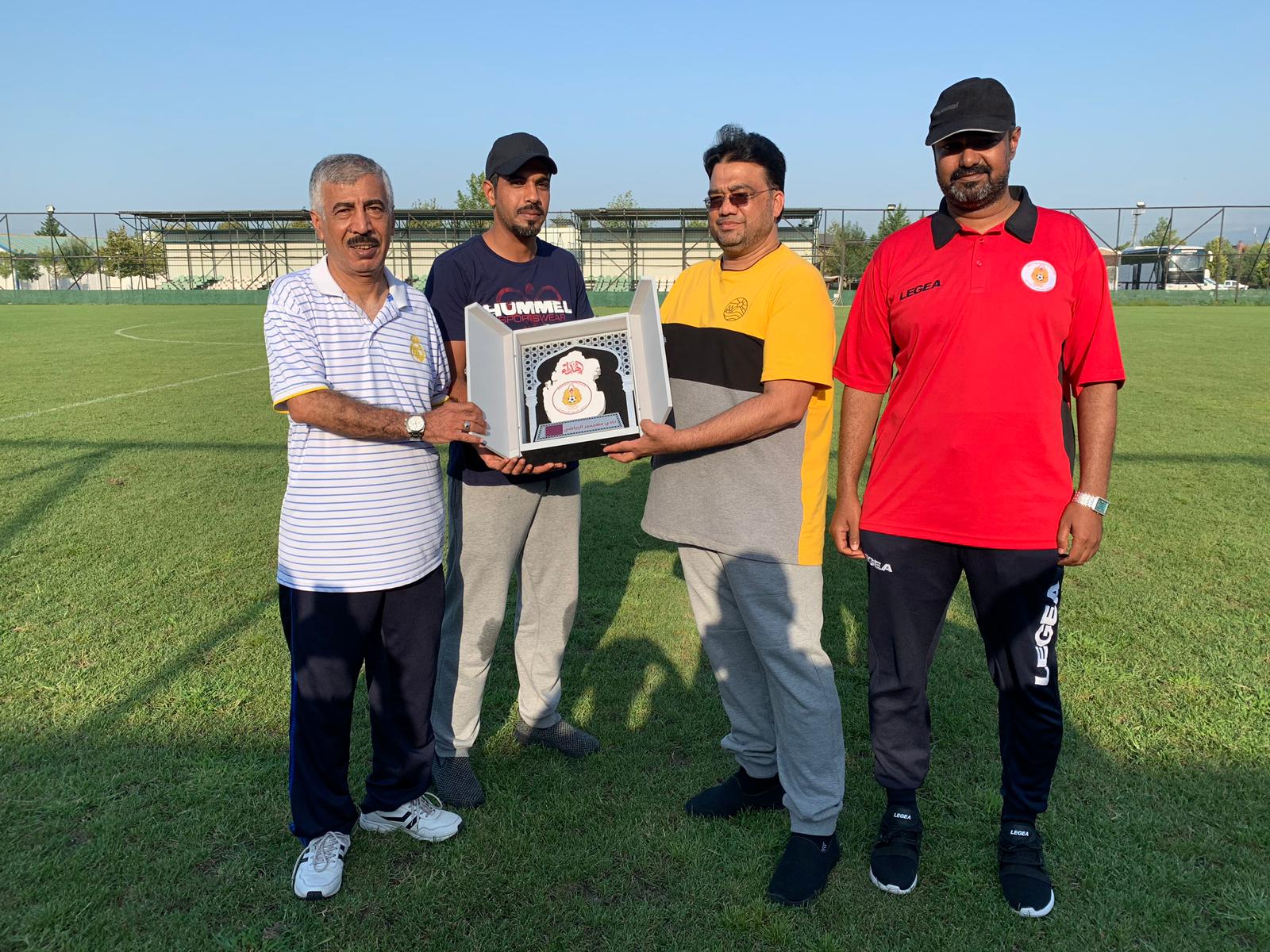 وقام السيد/ عبدالرحمن امير مدير فريق مسيمير بتقدم هدية تذكارية للسيد/ مشاري المطيري مدير فريق الخيطان الكويتي بين الشوطين.