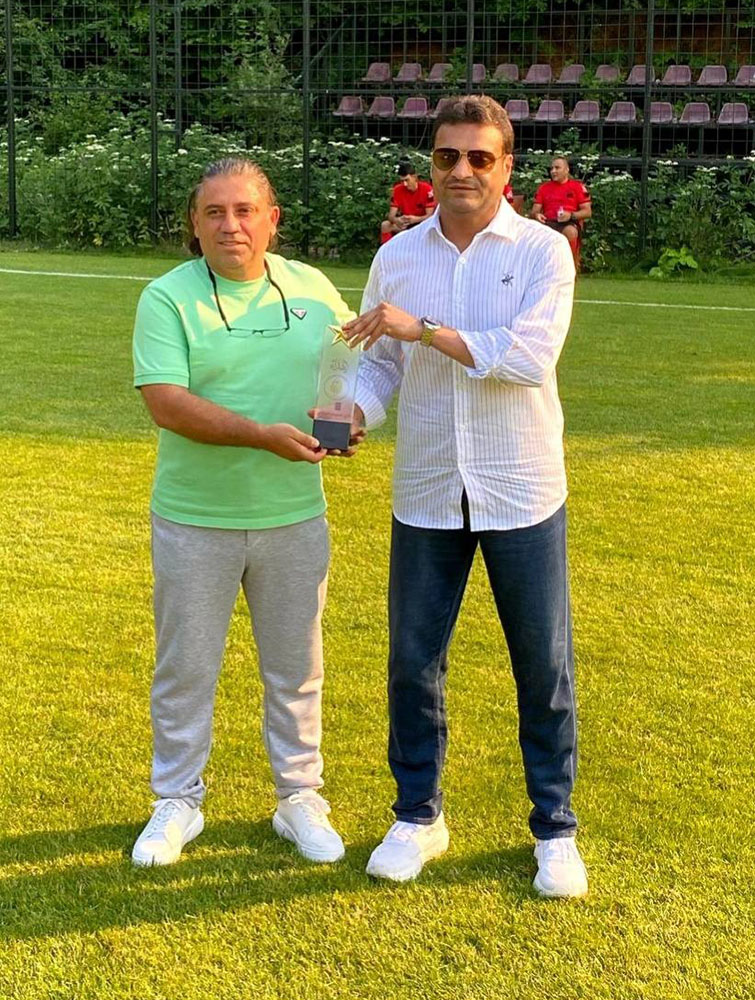 وقد قام السيد/ بدر عبدالرحمن المانع - رئيس الوفد بتسليم هدية تذكارية للفريق الضيف بين الشوطين .